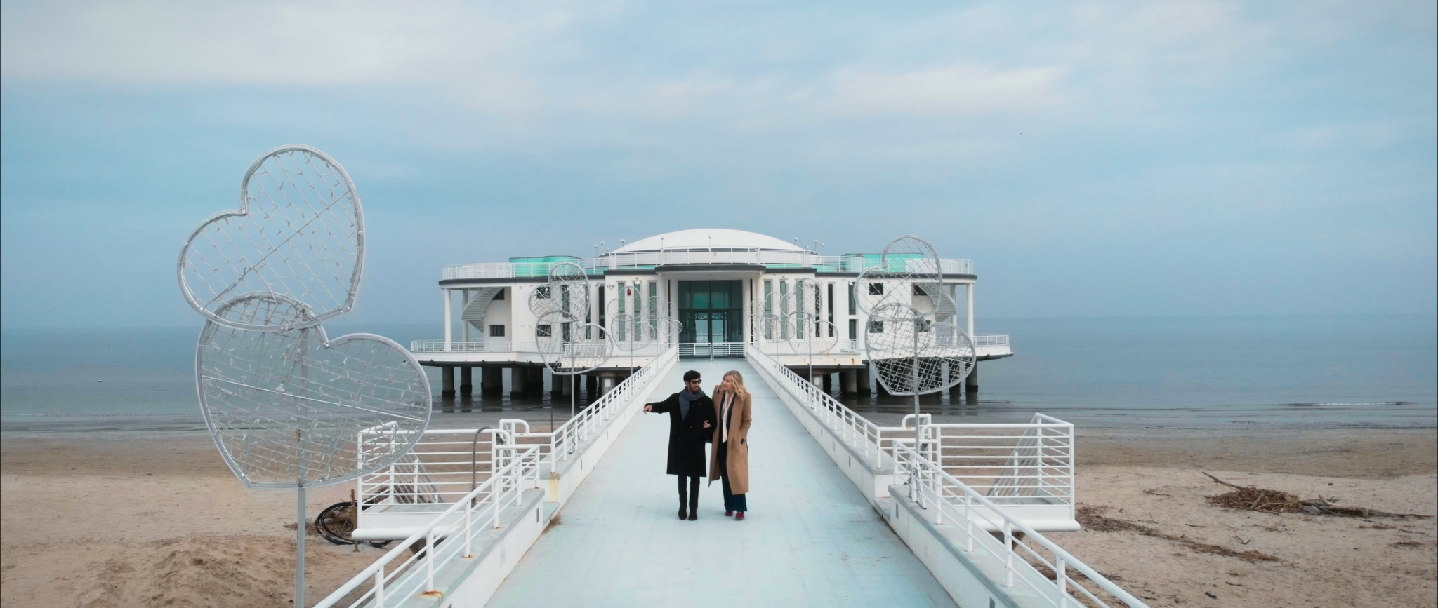 Enrico Oetiker e Natasha Stefanenko davanti alla Rotonda a Mare di Senigallia in una scena di “A se stesso”.