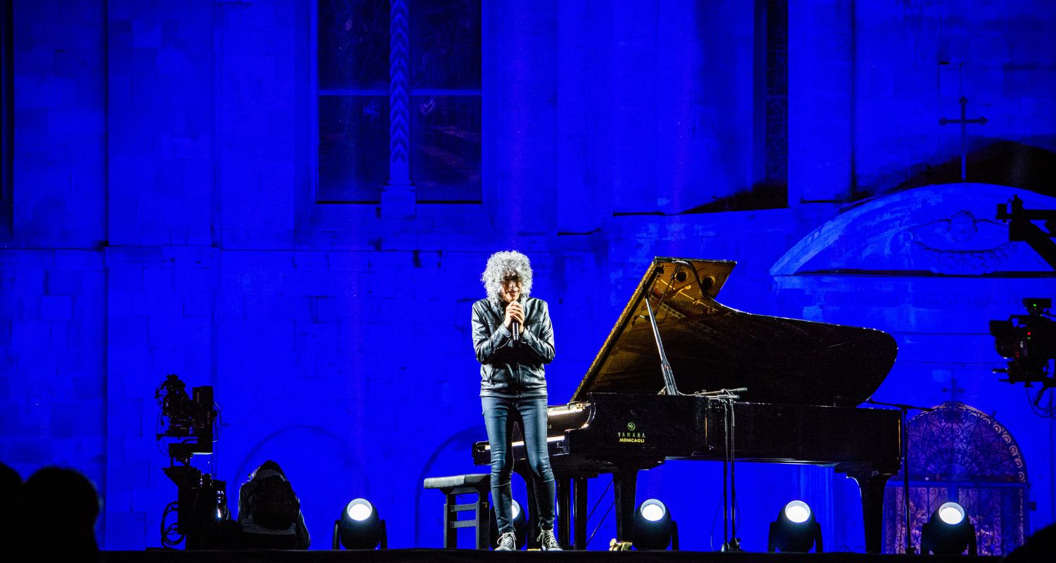 Il Maestro Giovanni Allevi durante un momento del concerto in Piazza del Popolo ad Ascoli, dal film “ALLEVI – Back to life”